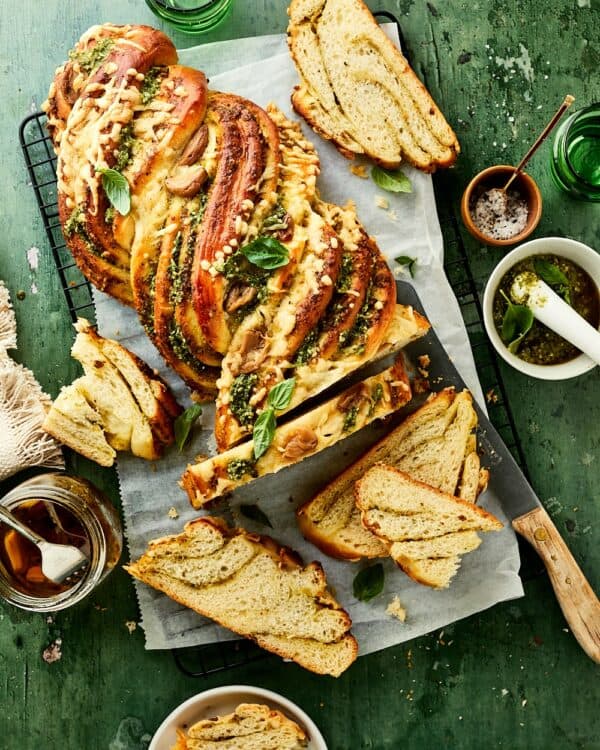 In Nederland eten we enorm veel brood, gemiddeld zo’n 50 kilogram per jaar. Om het toch een beetje spannend te houden, maak ik vandaag een speciaal brood. Ik weet bijna zeker dat je hem nog niet eerder hebt gebakken. Ik heb het natuurlijk over dit overheerlijke pesto swirl brood. Een prachtig brood dat bekend staat om de unieke draaiende structuur. Het is werkelijk waar een plaatje om te zien. Wist je overigens dat het super lekker is om het pestobrood met pesto boter te besmeren? Try it!
