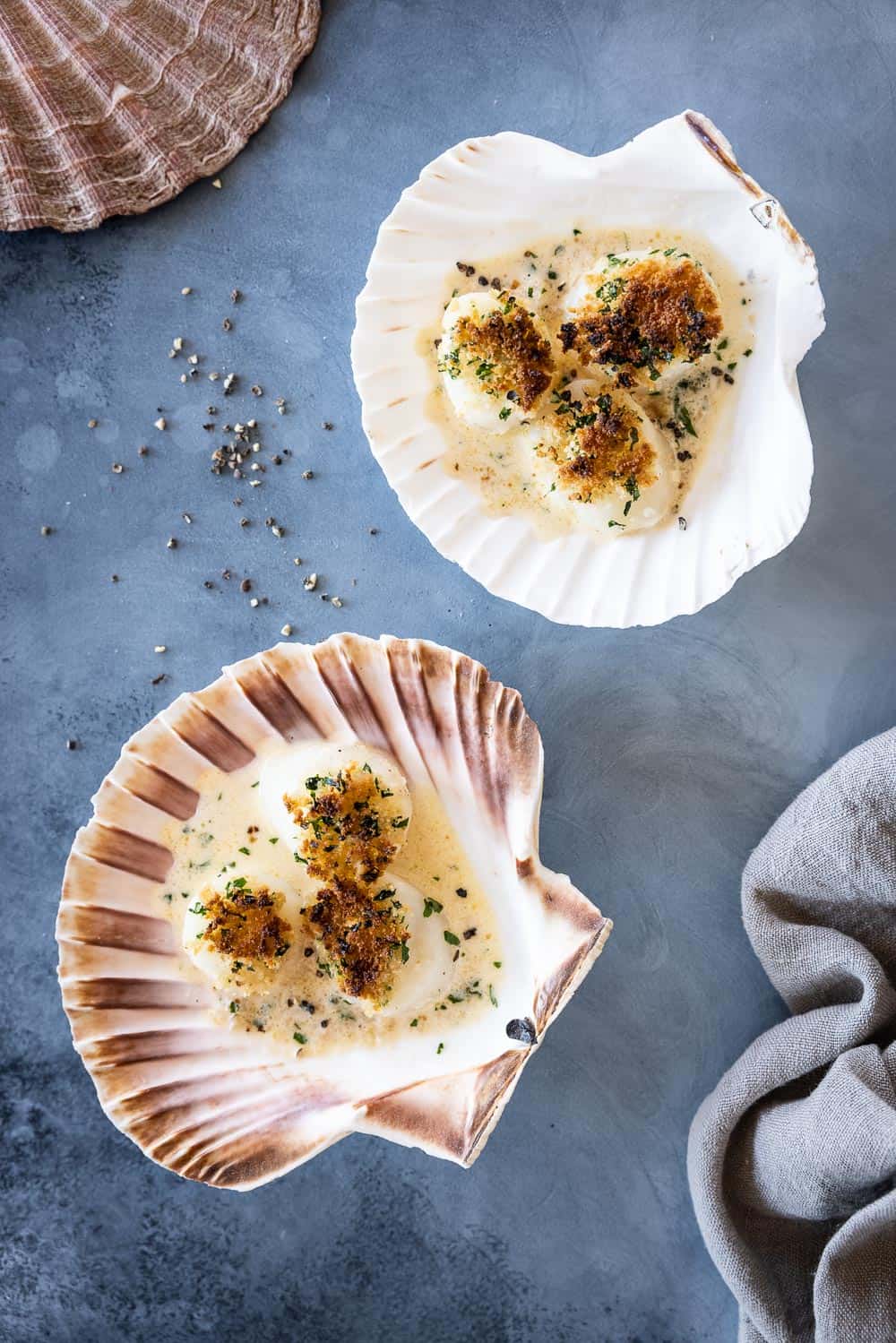 Gegratineerde Sint-jakobsschelpen met witte wijnsaus