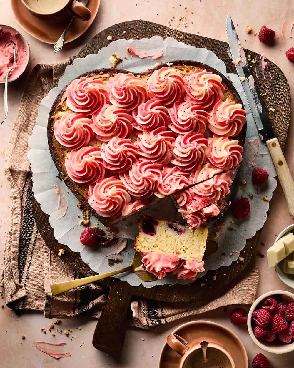 Hartvormige blondie met frambozen-botercrème
