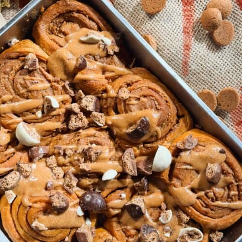 Wat Speculoos uniek maakt, is dat de smaak wat milder en romiger is dan gewone speculaas. De Belgische versie heeft iets minder uitgesproken kruiden en een fijnere zoetheid van karamel, waardoor de pasta een beetje naar koekjesdeeg smaakt. Het heeft een lichtzoete, boterachtige smaak die perfect past bij brood, gebak of als vulling voor heerlijke recepten zoals de Sinterklaas Speculoos Rolls!