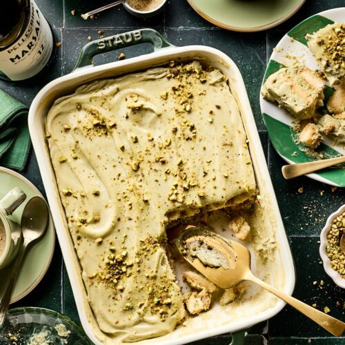 Tiramisu is zo’n dessert waar je nooit verkeerd mee kan gaan. Maar ik heb het nu over een pistache tiramisu. Romig, luchtig en met die heerlijke smaak van marsala krijg je ook die koffie-achtige vibes. Maar vandaag gooi ik er een verrassende draai aan: pistache! Deze groene noten geven niet alleen een superlekker, nootachtig smaakje, maar ook een feestelijke, chique uitstraling. Dit is zo’n dessert waar je mee wil pronken als er vrienden komen eten, of voor een feestje. Wat dacht je van deze pistache tiramisu voor de feestdagen? Ja, dit is echt een topper.
