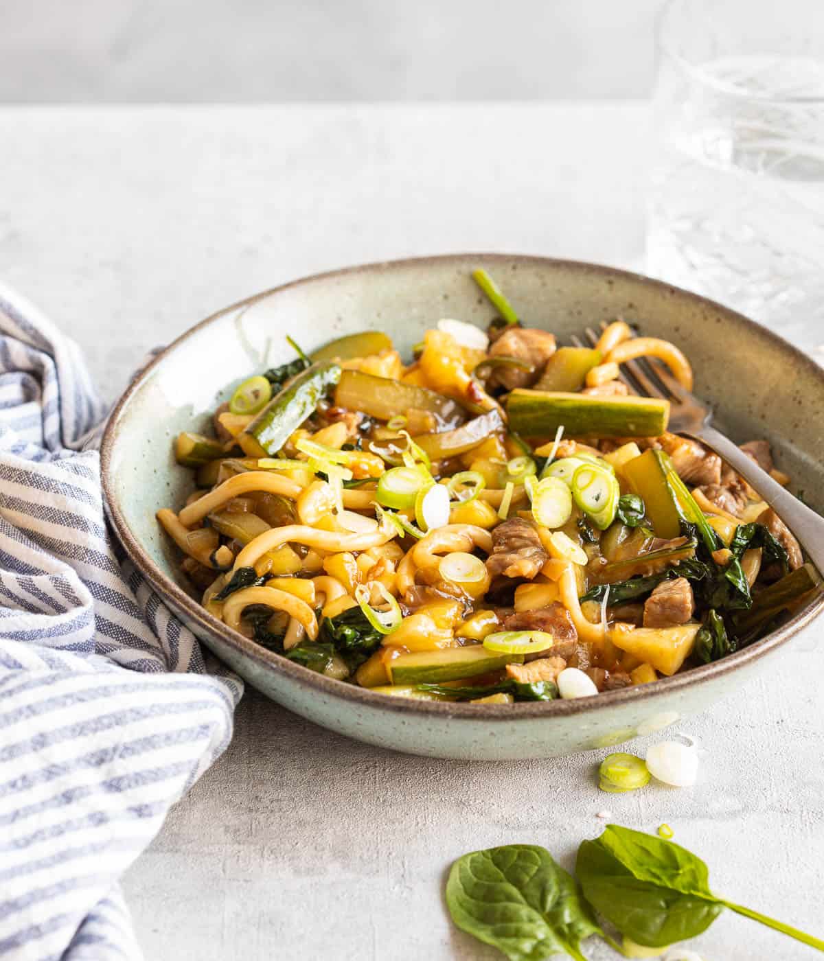Zoetzure noedels met ananas zijn precies dat gerecht waar je spontaan vrolijk van wordt. Denk aan zachte noedels die alle smaak van een zoetzure saus opnemen, gecombineerd met sappige stukjes ananas stukjes varkenshaas en knapperige groenten. Het is een mix van zoet, zuur en umami. Een smaakpalet dat je avondeten net wat lekkerder maakt. Dit recept is perfect voor wanneer je zin hebt in iets lichts, maar toch super smaakvol.